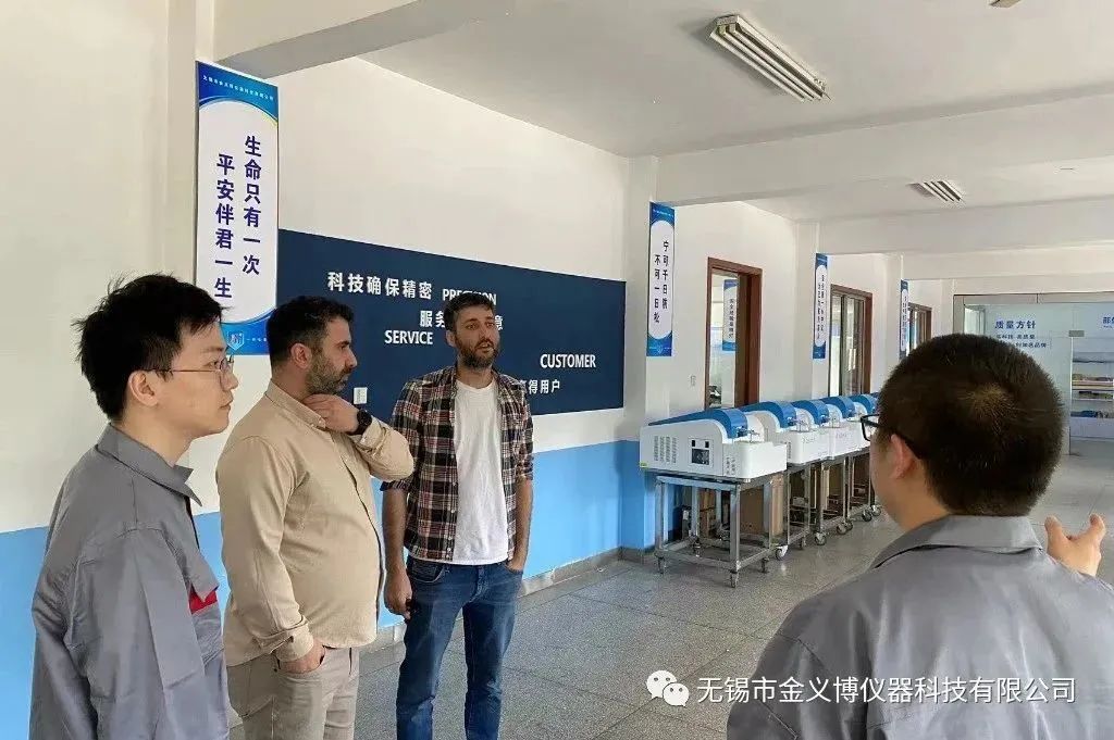 2023年4月26日,伊朗客戶蒞臨無(wú)錫市金義博儀器科技有限公司參觀指導(dǎo)。由公司國(guó)際貿(mào)易部銷售經(jīng)理張新磊帶領(lǐng)著兩位外國(guó)友人參觀金義博直讀光譜分析儀制造生產(chǎn)線,對(duì)相關(guān)產(chǎn)品、技術(shù)等進(jìn)行詳細(xì)地了解和實(shí)踐。